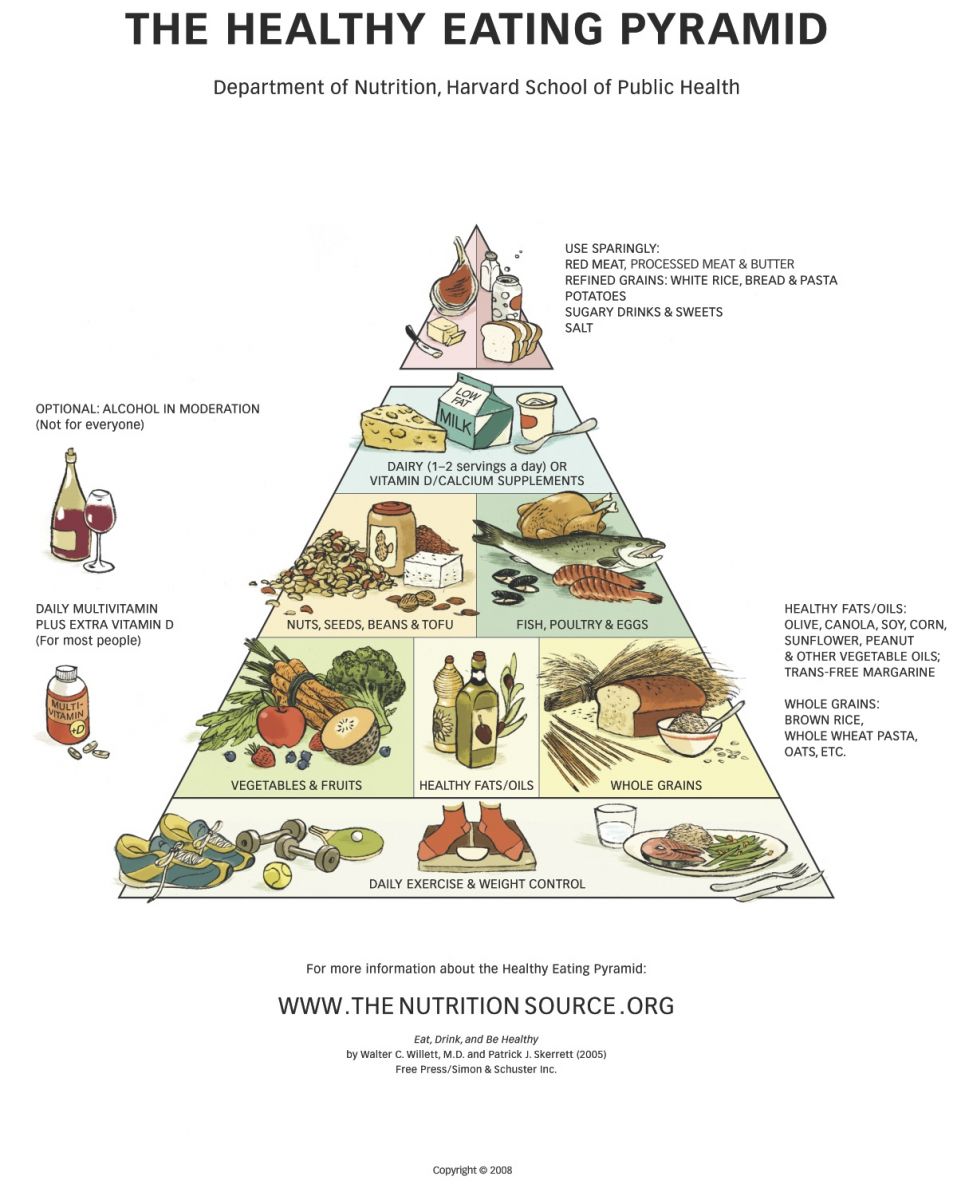 Το τμήμα διατροφής της Σχολής Δημόσιας Υγείας του Χάρβαρντ συνέταξε μια έκδοση της διατροφικής πυραμίδας η οποία συμπεριλαμβάνει μια σημείωση που συνιστά την “καθημερινή λήψη μιας πολυβιταμίνης και επιπλέον βιταμίνης D (για τους περισσότερους ανθρώπους).”
