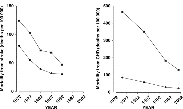 Η θνησιμότητα σε ηλικίες κάτω των 65 ετών κατά τα τελευταία 30 χρόνια μειώθηκε κατά 75%, ενώ το προσδόκιμο επιβίωσης αυξήθηκε κατά 6-7 χρόνια! Βλ. εικόνα [Πηγή: Progress in Cardiovascular Diseases 2006; 49:59-75]. Είναι αξιοσημείωτο ότι τα παραπάνω συνέβησαν ενώ οι Φιλανδοί στο ίδιο χρονικό διάστημα, αύξησαν την κατανάλωση αλκοόλ και τσιγάρων!