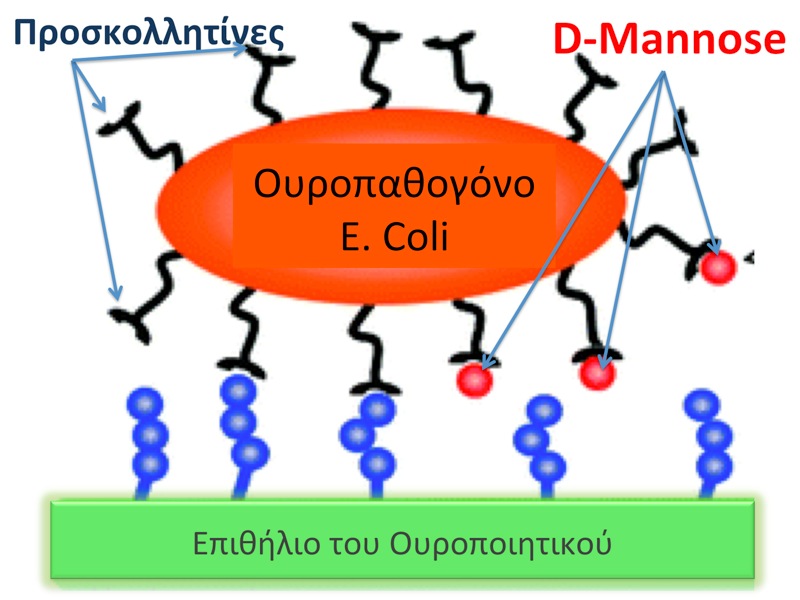 Το D-Mannose δεσμεύεται το ίδιο στις απολήξεις προσκόλλησης των μικροβίων. Τα μικρόβια δεν μπορούν να προσκολληθούν στα τοιχώματα του ουροποιητικού και έτσι αποβάλλονται με τα ούρα χωρίς να προκαλέσουν πρόβλημα.